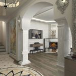 Квартира может удивить сложными арками, колоннами и перегородками.