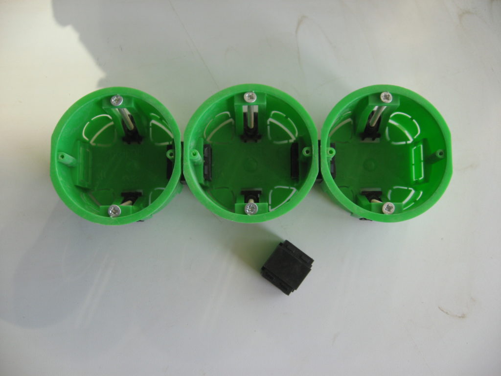 Подрозетник для гипсокартона представляет собой пластиковый стакан с регулируемыми пластинами из пластика или металла. Благодаря этим «лапкам» подрозетник фиксируется к тыльной стороне листа гипсокартона. Глубина монтажной коробки может быть 40, 50, 60 или 73 мм. Что касается диаметра, то у стандартного подрозетника это, как правило, 68-70 мм.