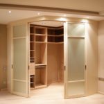 Если вы обшиваете гардеробную гипсокартонными листами только с внешней стороны, то следующий шаг можно пропустить, но если вы делаете обшивку и изнутри, то придется установить специальные звукоизоляционные плиты. Крепятся они между гипсокартонными панелями внутри стенки гардеробной. Самое время начинать крепить полочки и дополнительные шкафчики, если вы такие планировали установить.